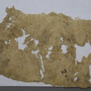 T0212④:1T0212④:2 +T0212④:3T0114③:609文物简介1990年出土于悬泉置遗址。残纸文书四件,T0212④:1正面隶书“付子”,18×12厘米;T0212④:2正面隶书“薰力”,12×7厘米;T0212④:3正面隶书“细辛”,3×4厘米。均为药名。色白,纸面粗而不平整,有韧性。根据纸的形状和折叠痕迹,当为包药用纸。标本T0114③:609,为不规则残片,黄色间白,质 ...