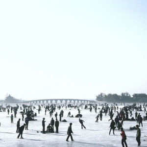 北京. 1984.昆明湖上的滑冰者。从北京市中心乘公共汽车只需一小时就可到达,非常受欢迎。
