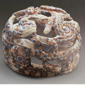 无锡鸿山越墓群发掘于2004年至2005年,入选2004年度全国十大考古新发现。鸿山越墓群共发掘了7座土墩墓,出土原始青瓷器、陶器、玉器等各类文物合计2000余件,是迄今为止越国贵族墓葬最重要的考古发现之一。鸿山越墓群中发现文物数量最多的一座墓葬为邱承墩(DⅦ),也是这7座墓葬中体量最大、等级最高的一座。该墓出土了4件“蛇形玲珑球形器”(以下简称“ ...