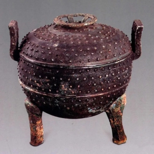 中山国青铜器种类充分体现了华夏和戎狄的融合。中山国青铜文化有两个发展阶段:战国早期含有大量戎狄民族特色的文化因素,到战国中期中原文化因素逐渐增加。中山国青铜器的主要种类包括容器、武器、车马器、装饰品、工具和杂器等,其中以前三类数量最多。容器的主要种类包括:鼎、豆、壶、盘、匜、鬲、甗、鍑等。乳丁蟠虺纹带盖铜鼎中山国青铜容器的器型可 ...