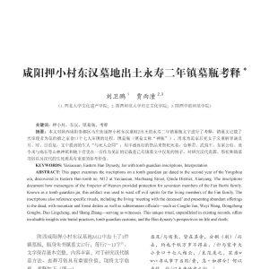 陕西高陵出土的东汉建和三年朱书陶瓶 选自《文物》2009年12期 刘卫鹏(咸阳市考古研究所) 2005年东汉建和三年朱书陶瓶出土于陕西省高陵县后被咸阳市渭城区秦咸阳宫遗址博物馆征集。陶瓶青灰色侈口平沿方唇溜肩稍折斜直腹平底。口径7.4、底径8.3、最大径11.5、高24.1厘米(图一)。陶瓶的腹部和肩部上面朱书有大量镇墓文字并画有道符(图二~四 ...