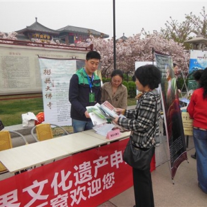 4月17日即农历三月初八是彬县大佛寺石窟的传统庙会,相传这一天是大佛的生日,每年的这个时候来自邻近城乡的香客总要集聚在这里,或焚香祈愿或起舞欢歌,场面十分热闹。今年庙会与以往不同的是加入了申遗宣传的内容,利用传统节日的平台宣传大佛寺申遗工作,让申遗与民众更加亲近。(彬县大佛寺石窟管理处 刘菲菲)