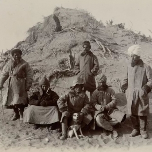 撰文:吴芳思 马克·伯纳德 《东方历史评论》微信公号:ohistory 敦煌毗邻举世闻名的“丝绸之路”,这是一条横贯中西的商贸交通要道,它沿着中亚腹地的沙漠边缘分为北路和南路。丝绸之路不仅是商贾们从绿洲到绿洲运输丝绸等货品的通道,而且是佛教传入中土的重要通道。20世纪初,(国际考古学家)对丝绸之路遗址进行考察的竞争已日趋激烈。 塔克拉玛干大沙漠的合影,摄于1907年秋。中间为斯坦因和
