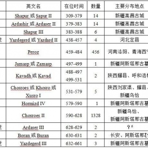 中国出土萨珊银币的分布与分期孙莉(科学出版社)中国出土的萨珊货币主要是银币,目前已见于新疆、甘肃、宁夏、陕西、山西、河南、河北、内蒙古、湖北、江苏以及广东等十一省(自治区),银币的总体数量在1932枚以上,分属于14位萨珊王。就萨珊银币在我国分布的地点和所属时代来看,其主要是沿陆上丝绸之路一线分布,并呈现出自西向东、从早到晚的分布特点 ...