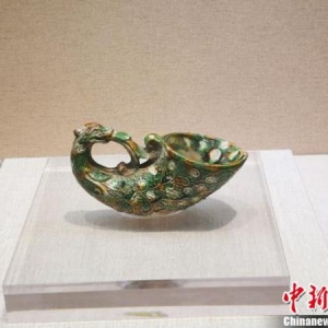 唐代三彩牛角形孔雀杯应妮摄 中新网洛阳6月10日电 (常书香 王勤 应妮)从隋唐洛阳城定鼎门遗址前的骆驼蹄印,到洛阳博物馆馆藏的东罗马金币、波斯银币、胡人俑,从汉魏故城永宁寺残缺而精美的泥塑像,到新安汉函谷关的关字瓦当、阙台、古道……历经两千年,丝绸之路留给洛阳的文化遗产依然光芒四射。 在6月10中国首个“文化和自然遗产日”,“丝绸之路与中原”文物展在洛阳博物馆亮相,吸引着公众探究这条横亘在亚欧大陆的文 ...