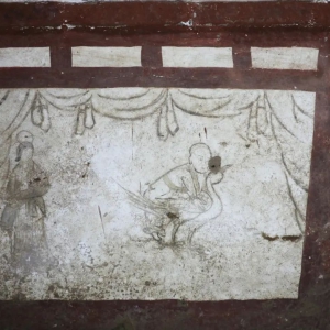 盂县泥河金墓墓门两侧的蒿里老翁 蒿里老翁亦称 “蒿里丈人”、“蒿里老人”、“蒿里父老”、“蒿里伍长”等。据研究“蒿里”即“死人里”,蒿里老翁是冥界一位神职人员,“保护亡魂安稳,荫佑生人平康”,在墓葬中还有固定放置位置,东汉晚期墓文中即已出现相关称谓。目前,西夏宋辽金元等阶段壁画中也有零星实物和自铭发现,且所见这类形象多位于墓门附近 ...
