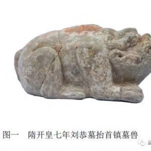 西安唐墓出土的镇墓兽 《收藏》2011年02期 张全民 2006年5月,西安市文物保护考古所在长安区韦曲科技产业园配合基建工程中清理了一座唐墓,出土文物引起社会各界的广泛关注。 该墓是一座长斜坡墓道单室土洞墓,带两个天井,为夫妇合葬墓。虽然历史上曾经被盗扰,但仍出土了30多件器物。墓室入口处的一件人面兽身的陶镇墓兽面朝南,蹲坐于墓口 ...
