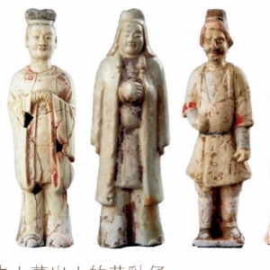 洛阳地区唐初墓葬[1]中,曾流行随葬一种特征鲜明的黄釉俑。(图一)它们以瓷土为胎,外施米黄色低温釉,部分陶俑表面仍存彩绘,整体特征较为鲜明。此类陶俑构成了隋唐陶俑演变历程中的重要环节,也是理解洛阳唐初墓葬有效的切入点,富有研究价值。然而,关于此类黄釉俑的讨论仍显不足,尚有不少问题亟待澄清。以下将从梳理黄釉俑的发现情况入手,理清这种遗物的产地与渊源,进而以此出发,探讨洛阳唐初墓葬文化的源流。 图一