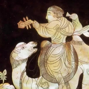 近年山西数座北齐壁画墓的发现,使得今人对北朝画迹的认识被屡屡刷新,去岁忻州忻府区九原岗墓群中的一座北朝晚期大型壁画墓,更以许多前此未见的艺术形象将人们的认识又推进一层。遗憾的是,除却穹隆顶上面的星象图及两壁星星点点的残迹,墓室壁画几乎盗揭殆尽,所幸墓道东、西、北三壁的壁画尚大部存留。东西两壁,画面自上而下界为四层。第一层,图画仙 ...