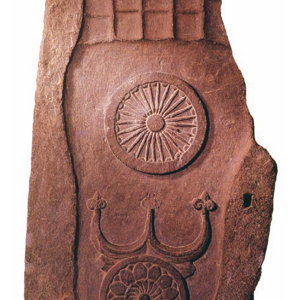 (一)2-7世纪佛像流行期的佛足迹图像基于印度独立佛足迹图像发展的实际情况,可以分为前后两个阶段。第一阶段(2-4世纪),为佛足迹图像最重要发展期。这一阶段,以人物形象表现的佛陀造型流行开来,佛陀象征性表现逐渐衰退。西北印度和东南印度出现并流行佛足迹石,标志着佛足迹图像作为一种独立信仰形式