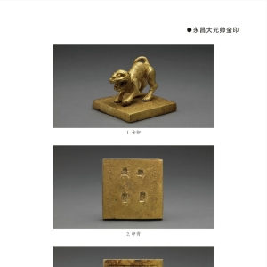 摘要:2016年,江口沉银遗址文物盗挖案件破获后追缴回一件“永昌大元帅印”。该印的虎钮及尺寸与明代和南明将军印类似,同时采用了明代官印的九叠篆文,当为明代至南明时期所制。金印多见于明末农民起义政权中,但“元帅”为起义军最高领导者才能有的称号。明末农民军领袖能和江口沉银遗址产生联系的只有张献忠一人,该印制作于1643年,正是大西军向南征战 ...