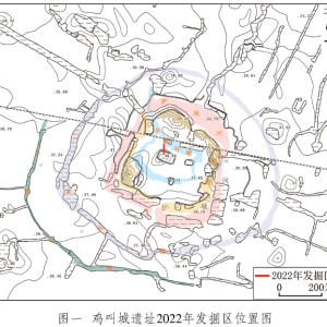 在往年对鸡叫城遗址的调查勘探中,了解到城址中心位置有一处覆斗形土台,土台高出周围地表1~2米,总面积约3000平方米,平面大体呈长方形,地势南高北低,呈两级阶梯状。方向与城址方向基本相同,为北偏东20度。为了解中心土台的功能结构和堆积过程,经国家文物局批准,湖南大学和湖南省文物考古研究院于2022年10月至2023年4月在土台北坡布设5米×5米探方1 ...