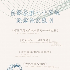 ●上一篇:茨默文选|突厥语Sart一词流变考 古突厥语的纺织品名称* 茨默 撰尤小羽 译,王丁 校(茨默(Peter Zieme),德国柏林勃兰登堡科学院、柏林自由大学突厥学研究所。尤小羽,德国波恩大学汉学系。王丁,上海外国语大学全球文明史研究所。)* 本文为国家社科基金重大项目“北朝至隋唐民族碑志整理与研究(18ZDA177)”的成果。作者就此题目先 ...