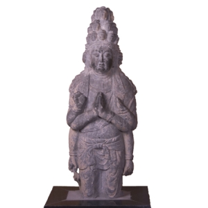 十一面六臂观音造像,石灰岩质,唐长庆年间(821~824年)雕造,造像两腿膝下残缺,残高171厘米。1976年3月河南省荥阳大海寺遗址出土, 1997年入藏河南博物院。深度品鉴荥阳大海寺出土的十一面六臂观音像的头顶部分三层刻八个小头像,最上面一个是有高肉髻的佛头像,中层二个和下层五个均为梳发髻的菩萨头像。另在左耳后刻有凶相面,右耳后刻善相面。正面 ...