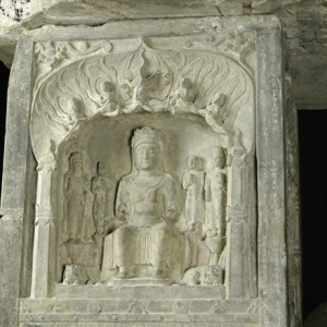 邴法敬造像碑,雕刻于隋开皇三年(583年),石灰岩雕造。通高215厘米,碑身高170厘米、宽63厘米、厚58厘米。为庑殿顶式四方柱体造像碑,由碑首、碑身组成,无座,碑首为九脊歇山式庑殿顶,高45、宽92、厚85厘米,正脊两端有鸱吻,正面左侧残缺一角。四面雕造龛像,每面竖列三龛,保存基本完好。深度品鉴1、邴法敬造像碑雕刻内容邴法敬造像碑碑身正面(图一 ...