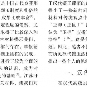 ————————————————————————————————————————全文阅读汉代镶玉漆棺及相关问题讨论(作者:王煜 四川大学历史学院 原文刊于:《考古》2017年第11期)