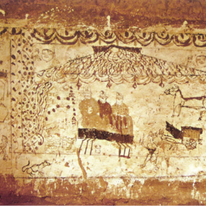 出土壁画与纸画(一)壁画图一 阿斯塔那墓地06TAM605壁画斜坡墓道单室土洞墓,出土有东晋咸安五年(375年,“咸安”实际只使用二年)隗田英随葬衣物疏,此时属前凉末期,出土文书中前凉往往奉行东晋年号。2.阿斯塔那墓地西区M408斜坡墓道单室土洞墓,根据其形制、器物及出土文书,发掘者将其时代判定为十六国时期,墓主为吝尊锺及其妻令狐阿婢。壁画绘于 ...