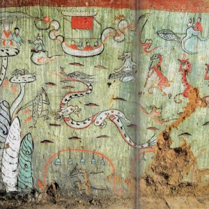 陕西出土秦汉的壁画很多,我这里就选择一部分向大家作一些简要的介绍。关于汉代的壁画以往的研究不多,但多数都是从考古的角度出发,所以我这里就不讲考古的知识,考古方面的内容大家可以从发掘报告,也可以从黄佩贤等人的研究去看,应该说比较系统,也比较成熟。 这一幅图是秦代宫殿遗址出土的壁画,虽然年代很早,但是形式感却很现代。画面残泐得比 ...