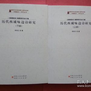 历代西域咏边诗研究(上下)作者:薛宗正出版社:新疆人民出版社出版年:2017-2页数:1029定价:210装帧:平装丛书:新疆通史研究丛书ISBN:9787228183111内容简介本书是《新疆通史》研究丛书之一。书稿精选从古至今的反映西域生活和征战的诗作,从文学和史学互证研究的角度,表达西部边疆自古以来都是中国不可分割的主题,具有一定的现实意义。 ...