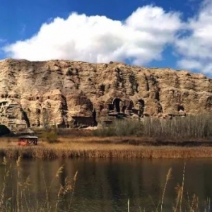 克孜尔石窟外景克孜尔石窟位于拜城县克孜尔乡东南七公里木扎提河北岸却勒塔格山对面的断崖上。克孜尔是维吾尔语“红色”的意思。大概是因为却勒塔格山色赭红,在朝晖夕阳的映衬下犹如胭脂,与河水相映成趣而得名。1961年,克孜尔石窟被列为第一批全国重点文物保护单位;2014年,克孜尔石窟被列入世界文化遗产名录。石窟总体走向呈东西向,绵延约三公里。洞窟分为四个区域:谷西、谷内、谷东和后山。1953年正式编号的洞