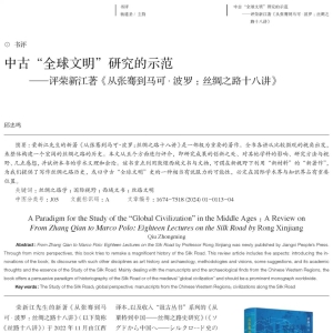 来源:《艺术设计研究》2024年第1期中古“全球文明”研究的示范 ——评荣新江著《从张骞到马可·波罗:丝绸之路十八讲》邱忠鸣扫码关注我们微信:西域研究邮箱:xyyjbjb@126.com