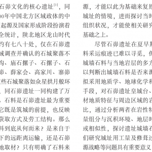 贺黎民 邵 晶 邸 楠(1.武汉大学历史学院;2.陕西省考古研究院)石峁遗址作为石峁文化的核心遗址,同时也是“公元前2300年中国北方区域政体的中心”,在我国文明起源及国家形成阶段扮演着重要角色。据不完全统计,陕北地区龙山时代石城聚落的数量大约有七八十处,仅在石峁遗址所在的秃尾河流域调查并确认的石城聚落不下10处,包括桃柳沟、庙石摞子、石摞子 ...