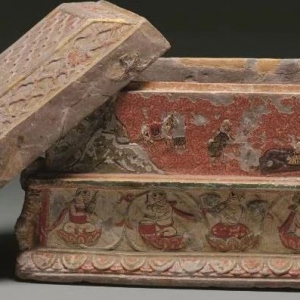 浙江东阳中兴寺砖塔始建于北宋建隆元年(960年),九层四面,为楼阁式砖木混合塔。由于塔基下沉,长年失修,于1963年4月23日倾倒。1963年5月,浙江省文物管理委员会于现场发掘清理,从废墟中发掘大量文物,出土文物二百余件(组),其中一级文物多达7件,轰动一时。出土文物中,除贴金彩绘石雕经函(浙博02736)、墨书《妙法莲华经》七卷(浙博23909)现藏 ...