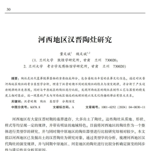河西地区汉晋陶灶研究董文斌 魏文斌摘要:陶灶是汉代墓葬随葬器物的重要组成部分,包含着较为丰富的丧葬文化信息。通过对汉晋河西地区陶灶的考古类型学分析,理清了汉晋时期不同时段陶灶的特点与演变规律,并分析了产生这些规律的历史原因。同时与中原地区的陶灶进行比较,发现河西地区的陶灶在制作工艺与器型的精美度上相对落后,这一现象的产生与河西地 ...