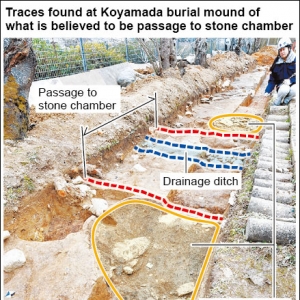 ASUKA, Nara Prefecture--Archaeologists have uncovered evidence of a mystery building that was erected on the site of an ancient square here that figured large in events during the late sixth century to early eighth century.