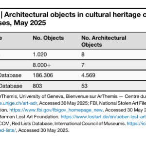 The illicit trade of architectural elements poses a long-standing challenge to cultural heritage conservation yet remains largely overlooked. This paper highlights the need to interlink heritage metadata and visual data for identifying architectural eleme