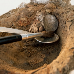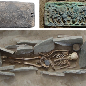 (Courtesy of the Institute of Archaeology/Russian Academy of Sciences)Bronze Corinthian helmet, Taman PeninsulaArchaeologists have discovereda bronze Corinthian helmet in the burial of several fifth-century B.C. Greek warriors in southwestern Russia. This