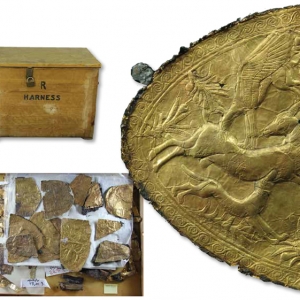 (Christian Eckmann/Copyright: RGZM, DAI Cairo and University of Tübingen)Clockwise from top left: wooden box, embossed gold sheet, and gold fragmentsAlthough the treasureof the Egyptian pharaoh Tutankhamun’s grave, one of the most famous archaeological di