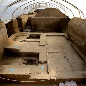A digger works at the archaeological site of the three royal baths unearthed in Xi'an, Shaanxi province. Three royal baths have been unearthed among the ruins of an ancient city in Xi'an, Shaanxi province, archaeologists said.They were found in August dur