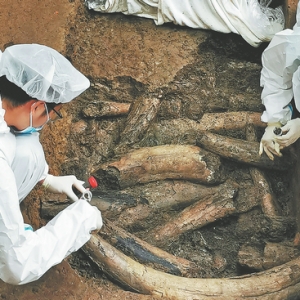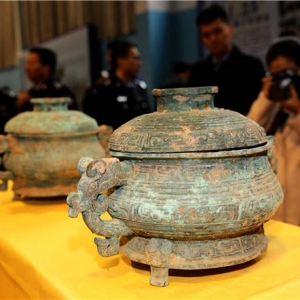 People examine relics on Tuesday that were recovered in a special operation in Xi'an, Shaanxi province. The launch of China's national internet platform that provides information about lost or stolen cultural relics will help netizens create even more suc