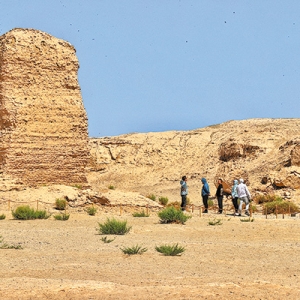 Visitors at the ruins of a beacon tower of the Han Dynasty (206 BC-AD 220) Great Wall in Dunhuang, Gansu province.Deep in the Gobi Desert in Northwest China's Gansu province, remnants of the Han Dynasty (206 BC-AD 220) Great Wall stand firm. One layer of