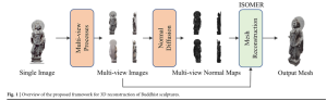 AbstractBuddhist sculptures face preservation challenges due to physical degradation and limited accessibility. We present a framework for high-fidelity 3D reconstruction from single 2D images, integrating modified Stable Diffusion architecture with a nov