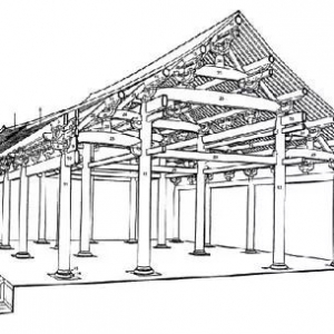 一、 构架制(图二)即“以立柱四根,上施梁、枋(按开间方向连贯两柱间的横木为梁;按进深方向连贯两柱间的横木为枋),牵制而成为一“间”。梁可数层重叠称“梁架”。每层缩短如梯级,逐级增高称“举折”,左右两梁端,每级上承长榑,直至最上为脊榑,故可有五榑,七榑至十一榑不等,视梁架之层数而定。每两榑之间,密布栉篦并列之椽,构成斜坡屋顶之骨 ...