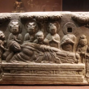 20世纪50年代北京朝内大街旧文化部附近曾出土了一件石舍利函,长95厘米,宽62厘米,高40厘米,外璧四周浮雕刻有涅槃图。原石函盖上刻有墓志铭文,为辽乾统五年(1105年) 所作。石函现存于北京首都博物馆。笔者考察时,石函仍在,但函盖不知置于何处,故铭文不得其详。(图一)辽代宝塔寺舍利石函第一侧面佛经故事释迦佛入灭石函正面图案为释迦头枕右臂,双足 ...