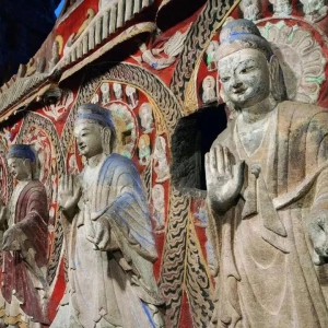 天梯山石窟位于甘肃省武威市凉州区中路乡黄羊河水库东岸岩壁上,现存洞窟18个,始凿于十六国北凉统治者沮渠蒙逊定都姑臧(今武威)时期(公元412-433年),北朝、唐有所扩建,西夏及后续朝代历经重修,学界多认为这里就是史籍中记载的「凉州石窟」。现存洞窟中,以南侧的第13号窟大佛窟规模最为庞大,也是目前唯一开放参观的洞窟。该窟开凿于唐代,有 ...