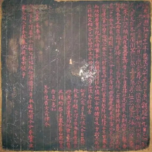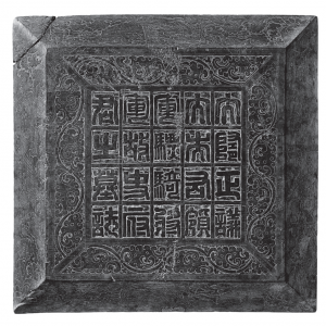 隋代史射勿墓,1987年7月发掘于宁夏固原县南郊小马庄村,是固原地区20世纪发掘的粟特史氏家族墓之一。史射勿墓志的发现对研究来华中亚粟特人,即“昭武九姓”中的史国人,沿丝绸之路商贸徙居中国的历史有着重要意义。 墓志通体呈方形,青石制成。志盖盝顶式,呈正方形,左上角稍有缺损,边长46.5×47、厚10厘米,四边宽4厘米,阴刻一周忍冬纹样,四斜刹上 ...