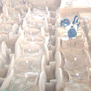 图一 晋侯墓车马坑发掘曲村-天马遗址位于山西省临汾市曲沃、翼城两县的交界处,地处曲沃盆地北部边缘,南、北两面与绛山、塔儿山相望,西临汾河,滏河经遗址东南角绕过,地势低而平坦,水土丰沃。遗址范围东西约3.8、南北约2.8千米,面积近11平方千米,包括北赵、张、曲村等自然村。曲村-天马遗址作为晋国早期都城而闻名,1996年被国务院公布为第四批全国 ...