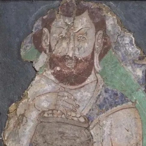 长有络腮胡须的拘尸那(Ku~inagara)城婆罗门--多卢那(梵名Drona),手捧装有佛陀舍利的舍利罐,正在给八国王均分佛陀舍利。以此平息了八国因争夺佛舍利而即将燃起的战火。此壁画是日本大谷探险队于1902年至1904年期间,在中国新疆克孜尔石窟“八王分舍利”壁画中切割下来的多卢那像,现存于日本东京国立博物馆。【多卢那均分舍利息战祸】多卢那为皈依佛陀 ...