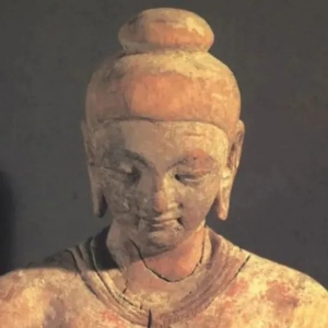 木雕佛坐像五至六世纪高16.5公分新疆图木舒克佛寺遗址出土德国柏林国立博物馆亚洲艺术馆藏这尊佛像低头俯视,结禅定印,结跏趺坐。肉髻低圆,髫平无纹,面容清秀,神色恬淡,两耳厚硕。著圆领长袖贴体僧衣,无衣纹,仅袖口及领口有若干襞褶,隐现身体起伏。与同时代造像相较,此佛像头部比例略小,面部及手部之造型趋于写实。感恩转发