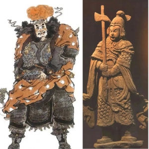 这次的故事要从《水浒传》说起。《水浒传》的第十三回“急先锋东郭争功,青面兽北京斗武”,写的是索超与杨志在北京大名府比武的故事。左为索超在连环画中的形象,右为泸县宋代石刻博物馆中的武士像索超原是河北大名府留守司正牌军,于是施耐庵写他:“头戴一顶熟钢狮子盔,脑后斗大来一颗红缨,身披一副铁叶攒成铠甲,腰系一条镀金兽面束带,前后两面青铜 ...