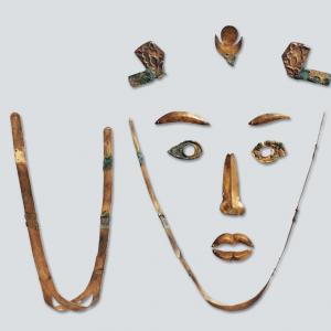 覆面,是指人死后直接掩盖在死者面部的覆盖物,体现着“灵魂永存”,同时也作为身份和地位的象征。覆面的葬俗由来已久,西周时就用玉石覆面,南北朝至唐朝使用丝质或纸质覆面,而金覆面则是用金片捶錾而成。1982年在宁夏固原县南郊乡王涝坝村史道德墓中出土了一批重要的遗物,墓葬虽遭严重盗掘,仍出土金器、陶器二十余件,金覆面就是其中之一。 史道德墓 ...