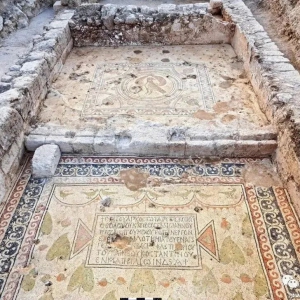 这幅鸟图腾镶嵌画躲过了公元6世纪一场毁坏马赛克画的破坏偶像主义浩劫。(图片来源:Assaf Peretz,由以色列文物局提供)考古学家们发现了一座有着1500年历史的,纪念一位不知名殉道者的古老教堂,其上的动物马赛克画已遭破坏。这座颇具规模的教堂上刻有希腊语铭文,上面写着它是献给一位“光荣的殉道者”,但是却没有道明这位殉道者的姓名。在这座教堂建 ...