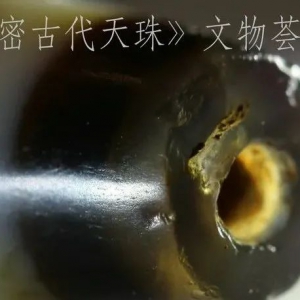 它来自西藏阿里地区的曲踏墓地这是一个距今2000多年的墓地图一 “虎牙”天珠这颗天珠的珠体原本为半透明的白玉髓,2000多年前的工匠运用当时的高科技——蚀花工艺在白玉髓珠的表面进行了人工装饰,从而使珠子看上去具有了“黑”(深褐色)白相间的纹饰。如图一所示,珠体表面大部分被蚀染成深褐色,其间有乳白色相间的纹饰,乳白色纹饰为:在珠体两端分别 ...