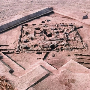 元代郭氏家族墓地航拍 山东济南元代郭氏家族墓地位于济南东郊虞山东北部,2021年4—7月,济南市考古研究院对其进行了考古发掘。墓葬共12座,编号为 M7—M18。墓葬规模较大,通长 6.4—12.4 米,均为南北向,其中 11 座为砖雕壁画墓,1 座为石室墓,均由墓道、墓门、甬道、墓室等部分组成。墓地被盗扰严重,除 M8、M15 外,其余均遭盗扰。其中 7 座墓中 ...