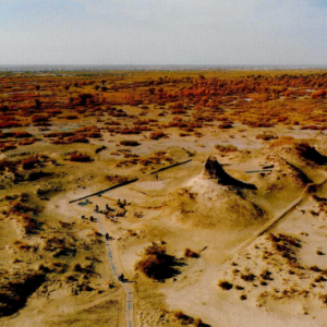 克亚克库都克烽燧遗址,位于新疆维吾尔自治区巴音郭愣蒙古自治州尉犁县东南90千米处的荒漠地带,是全国重点文物保护单位——孔雀河烽燧群中的一座。东距营盘古城47千米,东南距楼兰古城233千米。孔雀河烽燧群共有11座烽燧,沿孔雀河北岸,呈西北东南向分布在库尔勒市至营盘古城之间长约150千米的范围内。克亚克库都克烽燧遗址全景(东北至西南)1896年,瑞 ...