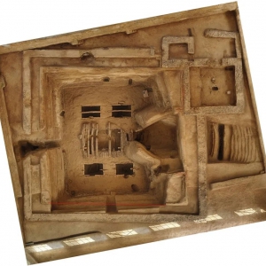 山西特殊的历史地位和自然环境,成就了高超的石刻艺术。从西汉起2000年来,各类石刻 作品精彩纷呈。运城征集的汉代圆雕蹲虎,简练拙朴。大同出土的宋绍祖墓仿木构建筑石椁,由百余件雕凿精细的构件拼装组合而成,是研究北魏建筑艺术不可多得的珍贵实物。太原隋虞弘墓石椁,以其精美的浮雕艺术和浓郁的异域风情,成为中外文化交流的见证 ...